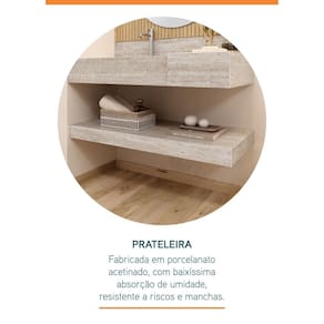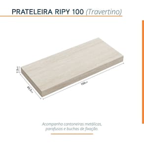 A Prateleira para Banheiro é fabricada em porcelanato técnico polido. Possui baixíssima absorção de umidade e é resistente a riscos e manchas. Acompanha cantoneiras de fixação na parede parafusos buchas de nylon. Ideal para compor com a Bancada em Porcelanato Para Banheiro Ripy 100cm (para Cuba de Apoio ou com Cuba Esculpida) da Marca BLU LAVATÓRIOS. Produto sai montado de fábrica, basta apenas fixá-lo na parede. Possui Manual de Instalação. Garantia de 12 meses para defeitos de fabricação. Acabamento: Acetinado Acompanha Cuba: Não Altura: 7,5 cm Ambiente Principal: Banheiro Cor: Travertino Cor do Produto: Travertino Escala de Brilho: Acetinado Estilo: Moderno Garantia do Fornecedor: 12 meses Itens Inclusos: 1 Prateleira, Kit Ferragens e Manual de Instalação Largura: 100 cm Linha ou Coleção: Ripy Manual de Montagem e Instalação: https://product-hub-prd.madeiramadeira.com.br/885718/documents/e088606b-6b24-41de-b23b-e5d1b2e4a0175027smartprateleiraripy100.pdf Material Principal: Porcelanato Técnico Polido Necessita Montagem: Não Origem do Produto: Nacional Peso: 11 kg Possui Prateleiras: Não Possui Sifão: Não Profundidade: 45 cm Recomendações de Uso, Manutenção e Limpeza: Para limpeza e conservação utilizar somente detergente neutro. Nunca utilizar qualquer tipo de cera. Não utilizar produtos abrasivos (esponjas de aço ou saponáceos). Suporta Até (kg): 10 Suporte para Toalheiro: Não