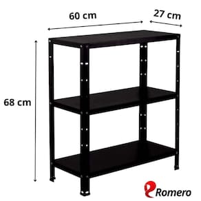 Prateleira Estante Armário Aço 3 Bandejas 60cm Preto Romero