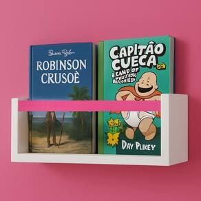 Prateleira Estante Branca De Ripa Rosa 40Cm