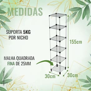 CARACTERÍSTICAS: - Cor: Branco/Preto - Material: Aço - Estante prateleira com estilo moderno - Tela aramada com malha de espaços 2,5cm - Distância do chão: 5cm
