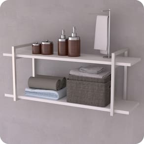 Ter um Banheiro organizado traz leveza e praticidade para sua rotina, para que ele fique em ordem, é necessário o uso de alguns produtos. O nicho granada de parede é indispensável, além de dar um toque especial na decoração. Produzido em aço com camada anti-ferrugem de fosfatização e pintura eletrostática epóxi, com prateleiras de MDP de primeira qualidade. Acompanha tampões projetados exclusivamente para esconder as cabeças dos parafusos de fixação na mesma cor dos arcos. ESPECIFICAÇÕES TÉCNICAS Área de instalação: Quartos, Salas de Jantar, Cozinhas, Banheiros Material: Aço e MDPDimensões do tubo da estrutura: Tubo quadrado 20x20 mmAcabamento da Estrutura de aço: BrancoAcabamento do MDP: Branco MEDIDAS DO NICHOComprimento: 120cmAltura: 41cmProfundidade: 29cmDistância entre as prateleiras: 30cm MEDIDAS DA PLACA DE MDPComprimento: 120cmEspessura: 1.5cmProfundidade: 24.5cm Tipo de Fixação: Parafusos Quantidade de Fixação: 4 Parafusos kit de parafusos e buchas para instalação: SIM