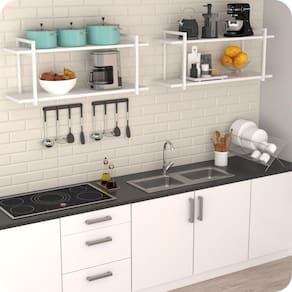 Prateleira estilo industrial cozinha de parede gnd bb 80cm Ter uma cozinha organizada traz leveza e praticidade para sua rotina, para ela fique em ordem, é necessário o uso de alguns produtos. O nicho granada é indispensável, além de dar um toque especial na decoração. Produzido em aço com camada anti-ferrugem de fosfatização e pintura eletrostática epóxi, com prateleiras de mdp de primeira qualidade.Acompanha tampões projetados exclusivamente para esconder as cabeças dos parafusos de fixação na mesma cor dos arcos. Especificações técnicasÁrea de instalação: cozinhas, salas de jantar,salas e quartos.Material: aço e mdp. Dimensões do tubo da estrutura: tubo quadrado 20x20 mm. Acabamento da estrutura de aço:branco Acabamento do mdp: branco Medidas do nicho Comprimento: 80cm Altura: 41cm Profundidade: 29cm Distância entre as prateleiras: 30cm Medidas da placa de mdp Comprimento: 80cm Espessura: 1.5cm Profundidade: 24.5cm Tipo de fixação: parafusosQuantidade de fixação: 4 parafusosKit de parafusos e buchas para instalação: sim