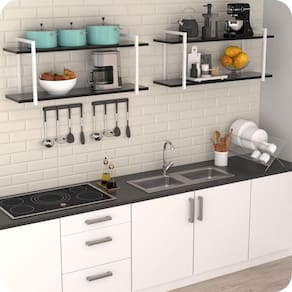 Prateleira estilo industrial cozinha de parede gnd bp 80cm Ter uma cozinha organizada traz leveza e praticidade para sua rotina, para que ela fique em ordem, é necessário o uso de alguns produtos. O nicho industrial granada de parede é indispensável para organizar seus objetos preferidos, além de dar um toque especial na decoração com o estilo industrial Produzido em aço com camada anti-ferrugem de fosfatização e pintura eletrostática epóxi, com prateleiras de mdp de primeira qualidade.Acompanha tampões projetados exclusivamente para esconder as cabeças dos parafusos de fixação na mesma cor dos arcos. Especificações técnicasÁrea de instalação: cozinhas, salas de jantar,salas e quartos.Material: aço e mdp. Dimensões do tubo da estrutura: tubo quadrado 20x20 mm. Acabamento da estrutura de aço:branco Acabamento do mdp: preto Medidas do nicho Comprimento: 80cm Altura: 41cm Profundidade: 29cm Distância entre as prateleiras: 30cm Medidas da placa de mdp Comprimento: 80cm Espessura: 1.5cm Profundidade: 24.5cm Tipo de fixação: parafusosQuantidade de fixação: 4 parafusosKit de parafusos e buchas para instalação: sim