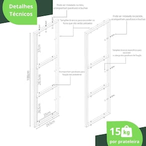 Peso Suportado por Prateleiras: 15Kg