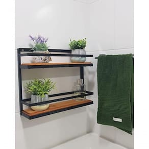 Prateleira 2 Andares Em Ferro E Madeira MultiMedidas da prateleira: 37cm de largura, 40cm de altura e 12cm de profundidade.