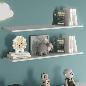 O kit de Prateleiras Infantil é ideal para organizar objetos, desde livros, brinquedos até bichos de pelúcia. Um design com linhas mais retas e modelo versátil, atual e despojado, pode ser para quartos de menino e menina com um estilo mais moderno e divertido. A Prateleira de Madeira é produzida 100% MDP, e um acabamento em melamina BP, que protege contra riscos e manchas. A prateleira tem 15mm de espessura. A fita de borda confere um acabamento refinado e evita que as bordas se descolem ou lasquem com facilidade. E fica a sua escolha instalar o kit de prateleiras junto ou separar, deixando alinhadas ou alternadas. São várias formas de usar, as prateleiras são modernas e descontraídas ideal para todos os ambientes. Aah! E o melhor de tudo, cada prateleira acompanha 2 Suportes Invisíveis em aço já com as buchas 8mm, que ficam escondidos atrás da prateleira e cria um efeito flutuante, eles permitem uma instalação fácil e segura, e sem furos ou parafusos aparentes.