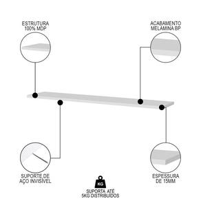 O kit perfeito para preencher espaços, a prateleira é produzida 100% MDP, e um acabamento em melamina BP, que protege contra riscos e manchas. A Prateleira Invisível tem 15mm de espessura. A fita de borda confere um acabamento refinado e evita que as bordas se descolem ou lasquem com facilidade. A Prateleira Flutuante possui a medida ideal para acomodar livros, quadros, decorações, plantas e muito mais. E não existe um padrão, fica a sua escolha instalar o kit de prateleiras junto ou separar, deixando alinhadas ou alternadas. São várias formas de usar, as prateleiras são modernas e descontraídas ideal para todos os ambientes. Aah! E o melhor de tudo, cada prateleira acompanha 2 Suportes Invisíveis em aço já com as buchas 8mm, que ficam escondidos atrás da prateleira e cria um efeito flutuante na parede, eles permitem uma instalação fácil e segura, e sem furos ou parafusos aparentes.
