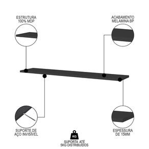 Altura: 1,5 cm | AssemblyRequired: Sim, sugerimos a contratação do nosso de montagem (para os CEPs em que o está dispon | Color: Preto | ColorFamily: Preto | ColorSimple: Preto | ColorSupplier: Preto | Cor: Preto | Gênero: Unisex | Largura: 91 cm | Manual: Sim | Marca: Lumil Móveis | Material: MDP | MaterialFamily: MDP | Model: Yara | Origem: | OriginCountry: | OriginState: PR | Peso: 3,8 kg | Peso Suportado: 5Kg | ProductHeight: | ProductInstructions: Produto para uso em ambiente interno, nao devendo ficar exposto ao sol, calor e umidade excessivos. | ProductLength: 20 | ProductWarranty: 90 dias após o do produto | ProductWeight: | ProductWidth: 91 | Profundidade: 20 cm | Requere montagem: Sim | SizeDescription: 1,5 x 91 x 20 cm | SupplierSimpleName: Prateleira Flutuante Para Sala Kit 2 com Suporte Invisível 91cm Yara Preto - Lumil | Tipo de Garantia: Fabricante