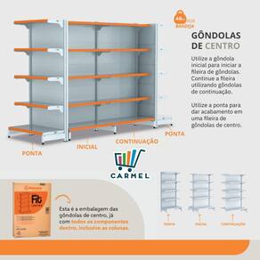 A fileira de Gôndolas deve ser iniciada com a Gôndola Inicial que possui 2 colunas.Todos os produtos Amapá possuem qualidade, resistência e durabilidade garantidas pelo uso de matérias-primas de alto padrão, processos produtivos tecnológicos e controle de qualidade. A pintura dos produtos é feita por meio da técnica eletrostática e com tratamento anticorrosão, deixandouniforme e resistente.