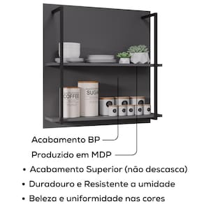 Prateleira Industrial Clara, funcionalidade e estilo para organizar e valorizar seu ambiente! Estrutura em MDP 15 mm com acabamento BP. Composta por 2 prateleiras suportando 10 kg cada, ideal para acomodar decorações ou utensílios diversos e lateral em ferro aparente, que emoldura o produto e reforça o design industrial. Produto será entregue em 01 volume.