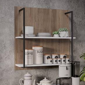 Prateleira Industrial Dupla Cozinha Suspenso Painel Eri 70,5cm M12 - D`rossi Cor Freijó E Branco
