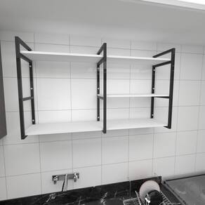 Prateleira estilo industrial para cozinha aço cor preto prateleiras 30 cm cor branca modelo ind14bc . Medidas, Profundidade: 30 cm Altura: 68 cm . Profundidade Livre das badnejas: 25,80 cm. MDF utlizado de alta resistencia 15mm. Aço utilizado 20x20 0,90 com pintura eletrostatica epoxi, anti ferrugem. Incluso parafusos e buchas. Suporta até 20 kg por nivel