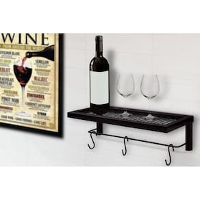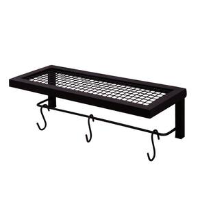 Prateleira industrial preta 40cm com 3 ganchos - lyra Prateleira preta estilo indústrial com tela e ganchos para modernizar seu lar.