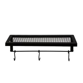 Prateleira industrial preta 40cm com 3 ganchos - lyra Prateleira preta estilo indústrial com tela e ganchos para modernizar seu lar.