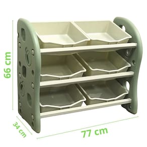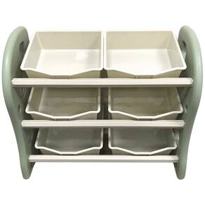 A prateleira organizadora de brinquedos é uma estrutura utilizada para manter todos esses itens em único lugar. Após a brincadeira, as crianças devem colocá-los nesse local, para evitar perder e deixar espalhado pela casa, possuindo 6 cestos grandes removíveis, modelo simples e de fácil acesso, facilitando a limpeza e organização.
