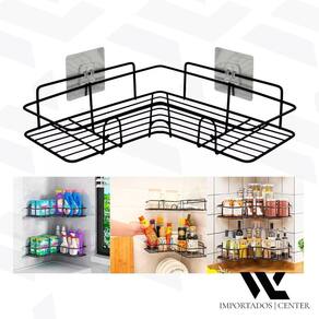 Prateleira multiuso porta shampoo e sabonete suporte de canto adesivo alta fixação sem furo na parede Cantoneira aramado triangular autoadesivo 36x16x5cm