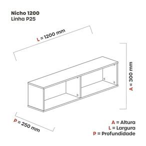 Nicho da nossa linha arena são fabricados com base e tampo de MDP BP 15mm com bordas em PVC 0,045mm, possui divisores com MDP BP 25mm com bordas de 2mm. Diversas opções de cores possibilitando você escolher a que mas combina com seus gosto. Ambiente Principal: Escritório Complexidade da Montagem: Baixa: pode ser montado por uma pessoa sozinha Cor: Grafito Cor do Produto: Grafito Escala de Brilho: Semi-Fosco Itens Inclusos: 1 Nicho, kit ferragens e manual de montagem Linha ou Coleção: P25 Manual de Montagem e Instalação: https://cdn2.madeiramadeira.com.br/atributo/pandin/1364473-nicho-1200.pdf Material da Prateleira: MDP Material do Fundo: MDP Material Principal: MDP Necessita Montagem: Sim Origem do Produto: Nacional Peso: 10,5 kg Peso Máximo por Prateleira: 15 kg Possui Espelho: Não Possui Possui Fundo: Sim Possui Portas: Não Possui Prateleiras: 01 Possui Toalheiro: Não Recomendações de Uso, Manutenção e Limpeza: Utilizar um pano levemente umedecido com água, para finalizar utilizar um pano seco. Sistema de Montagem: Parafusos Suporta Até (kg): 15 kg Tipo de Nicho: Prateleira