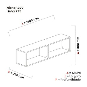 Nicho da nossa linha arena são fabricados com base e tampo de MDP BP 15mm com bordas em PVC 0,045mm, possui divisores com MDP BP 25mm com bordas de 2mm. Diversas opções de cores possibilitando você escolher a que mas combina com seus gosto. Ambiente Principal: Escritório Complexidade da Montagem: Baixa: pode ser montado por uma pessoa sozinha Cor: Walnut Cor do Produto: Walnut Escala de Brilho: Semi-Fosco Itens Inclusos: 1 Nicho, kit ferragens e manual de montagem Linha ou Coleção: P25 Manual de Montagem e Instalação: https://cdn2.madeiramadeira.com.br/atributo/pandin/1364473-nicho-1200.pdf Material da Prateleira: MDP Material do Fundo: MDP Material Principal: MDP Necessita Montagem: Sim Origem do Produto: Nacional Peso: 10,5 kg Peso Máximo por Prateleira: 15 kg Possui Espelho: Não Possui Possui Fundo: Sim Possui Portas: Não Possui Prateleiras: 01 Possui Toalheiro: Não Recomendações de Uso, Manutenção e Limpeza: Utilizar um pano levemente umedecido com água, para finalizar utilizar um pano seco. Sistema de Montagem: Parafusos Suporta Até (kg): 15 kg Tipo de Nicho: Prateleira