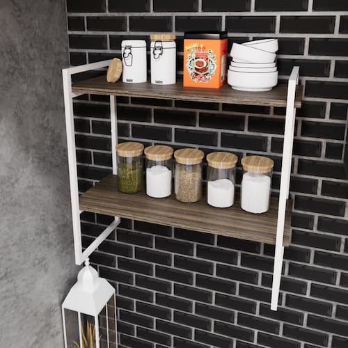 Especificações Técnicas Suporte Cor: Branco Metalon 15x15 Resistencia: até 15 kg por nivel de prateleira Distância entre prateleiras: 1º Nivel ao 2º Nivel: 13,5cm 2º Nivel ao 3º Nivel: 32,5cm