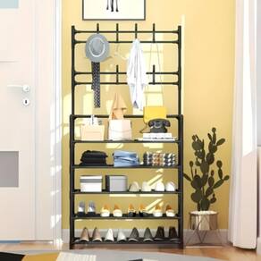 5 prateleiras e 8 ganchos duplos para máxima organização Fácil de montar, sem necessidade de ferramentas Design compacto e moderno que se adapta a qualquer ambiente Perfeita para sapatos, bolsas, casacos e livros Ajuda a economizar tempo e mantém sua casa sempre organizada Produzida em plástico PP e metal com pintura epóxi para maior durabilidade
