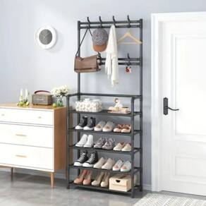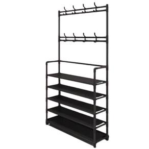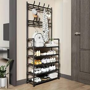 5 prateleiras e 8 ganchos duplos para máxima organização Fácil de montar, sem necessidade de ferramentas Design compacto e moderno que se adapta a qualquer ambiente Perfeita para sapatos, bolsas, casacos e livros Ajuda a economizar tempo e mantém sua casa sempre organizada Produzida em plástico PP e metal com pintura epóxi para maior durabilidade