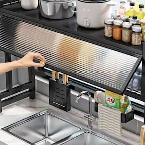 Prateleira Organizadora Preta para Pia de Metal Mini Armário Prateleira Organizadora Preta para Pia de Metal Mini Armário ===================================== Um organizador suspenso ideal para cozinhas que valorizam funcionalidade e economia de espaço.