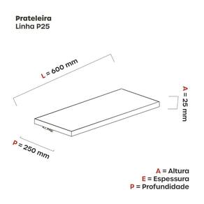 Prateleira em MDP 25mm medindo 25mm(A)x600(L)x250mm(P), móvel funcional, decorativo que cabe em diferentes ambientes e ajuda a organizar uma série de itens além de deixe seu cantinho ainda mais charmoso. Ambiente Principal: Escritório Complexidade da Montagem: Baixa: pode ser montado por uma pessoa sozinha Cor: Branco Cor do Produto: Branco Escala de Brilho: Semi-Fosco Itens Inclusos: 1 Prateleira e Kit Fixação Manual de Montagem e Instalação: https://cdn2.madeiramadeira.com.br/atributo/pandin/875779-11-t125-051-prateleira-600-1200.pdf Material da Prateleira: MDP Material Principal: MDP Necessita Montagem: Sim Origem do Produto: Nacional Peso: 2.58 Peso Máximo por Prateleira: 25 Possui Espelho: Não Possui Possui Fundo: Não Possui Portas: Não Possui Prateleiras: 01 Possui Toalheiro: Não Recomendações de Uso, Manutenção e Limpeza: Limpeza deve ser feita com um pano levemente umedecido e um pano seco. Sistema de Montagem: Parafuso Tipo de Nicho: Prateleira Ean: 7909903428177