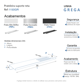 A prateleira suporte reta da linha Grega possui um design moderno e sofisticado, é uma peça que se destaca com requinte.