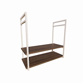 Especificações Técnicas Suporte Cor: Branco Metalon 15x15 Resistencia: até 15 kg por nivel de prateleira Distância entre prateleiras: 1º Nivel ao 2º Nivel: 13,5cm 2º Nivel ao 3º Nivel: 32,5cm
