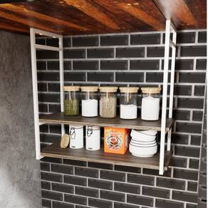 Especificações Técnicas Suporte Cor: Branco Metalon 15x15 Resistencia: até 15 kg por nivel de prateleira Distância entre prateleiras: 1º Nivel ao 2º Nivel: 13,5cm 2º Nivel ao 3º Nivel: 32,5cm