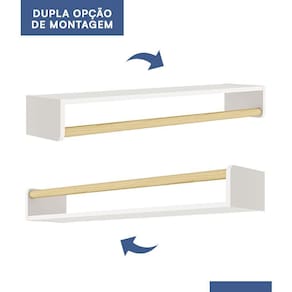 A Prateleira Theo é o complemento essencial para o quarto do seu bebê. Fabricada com material de alta qualidade, sendo 100% MDF, esta prateleira garante resistência e durabilidade para acompanhar o crescimento do seu pequeno(a). Sua pintura UV confere um acabamento impecável, proporcionando um toque de elegância ao ambiente. Equipada com um cabideiro em madeira, oferece praticidade para manter as roupinhas do bebê sempre organizadas e à mão. Além disso, sua versatilidade permite montá-la de duas formas diferentes, adaptando-se perfeitamente às necessidades do espaço. Seja para exibir os primeiros livros do seu bebê, os seus brinquedos favoritos ou itens de decoração encantadores, a Prateleira Theo é a escolha perfeita para tornar o quarto do seu bebê ainda mais acolhedor e funcional. Adquira já a sua e transforme esse espaço tão especial com estilo e praticidade.