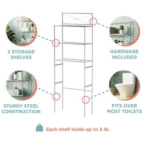 - Maximizes Bathroom Storage: This over the toilet bathroom organizer adds three spacious shelves to your bathroom, perfect for storing toiletries, linens, and decor. Transform wasted space into valuable bathroom organizers and additional storage.