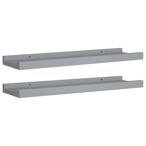 Feita de placa de MDF lacada, esta prateleira é durável e estável. Você pode montá-los individualmente ou em uma fileira na parede, oferecendo assim o espaço ideal para organizar suas molduras e decorações. As fotos estão simplesmente encostadas na parede. A borda frontal da faixa de fotos protege seus itens decorativos contra quedas. É fácil de pendurar com os orifícios na parte traseira