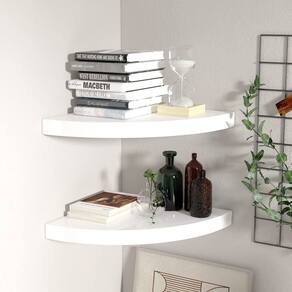 Este conjunto de 2 prateleiras de canto elegantes é ideal para exibir seus livros favoritos, decorações, fotos, prêmios, etc.