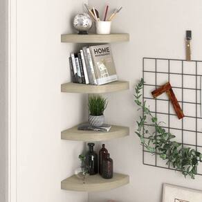 Este conjunto de 4 prateleiras de canto elegantes é ideal para exibir seus livros favoritos, decorações, fotos, prêmios, etc.