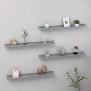 Este conjunto moderno de prateleiras de parede flutuantes é uma ótima combinação de estilo e função para qualquer casa contemporânea. Com seu design simples e acabamento em cinza fosco, essas prateleiras são uma ótima maneira de exibir seus livros, plantas ou itens decorativos favoritos enquanto enfeita sua sala de estar