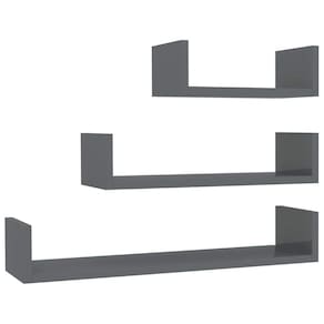 - Cor: cinza de alto brilho- - Material: madeira projetada- - Grandes dimensões: 23,6 ? x 5,9 ? x 3,9 ? (C x L x A) - - Dimensões médias: 17,7 ? x 5,9 ? x 3,9 ? (C x L x A) - - Pequenas dimensões: 11,8 ? x 5,9 ? x 3,9 ? (C x L x A) - - A entrega inclui 3 prateleiras em tamanhos diferentes - Ótimo para casa, escritório, dormitório, etc. - Atenção: parafusos e plugues para dentro da parede não estão incluídos. Procure e use parafusos e plugues adequados para suas paredes. Se você não tiver certeza, procure aconselhamento . Leia e siga cada etapa da instrução cuidadosamente. -