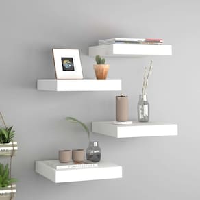 - Cor: branco- - Material: MDF em forma de favo de néctar das flores, metal- - Dimensões: 9,1" x 9,3" x 1,5" (C x L x A) - - Capacidade máxima de carga (cada): 11 libras- - Sistema de montagem invisível- - Montagem necessária: Sim- - A entrega contém: - - 4 x prateleira de parede- - Proposta 65 da Califórnia