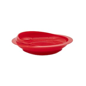 A cor vermelha vibrante foi escolhida por seu benefício em destacar os alimentos, ajudando na percepção visual, principalmente para pessoas com dificuldades de visão ou que precisam de estímulos sensoriais extras. O material é resistente e fácil de limpar, sendo ideal para uso diário.