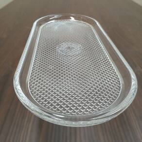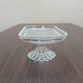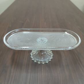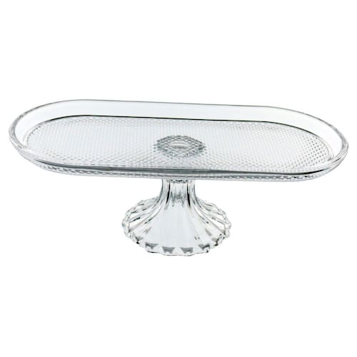 PRATO COM PÉ Altura: 11,5 cm Largura: 34,2 cm Profundidade: 15,6 cm Peso: 1,27 Kg Diâmetro da Base: 11,5 cm Material: Vidro Cor: Transparente
