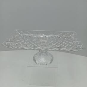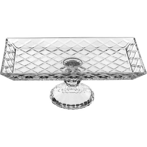 PRATO BOLO E DOCES Altura: 12,2 cm Largura: 32,2 cm Profundidade: 17,2 cm Peso: 1,43 Kg Diâmetro da Base: 11 cm Material: Vidro Cor: Transparente