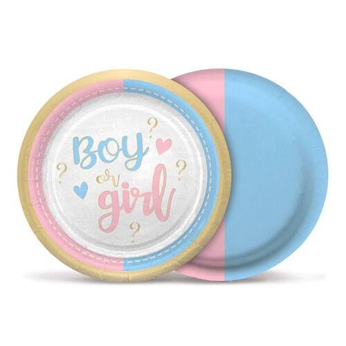 Contém: 08 Pratos Descartáveis de Papel para Chá Revelação de 18 cm