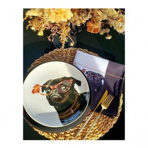 A imagem da Pug Juaninha não só traz um sorriso a qualquer refeição, mas também reflete a personalidade alegre dos cães. É uma peça que certamente encantará seus convidados e será o centro das atenções à mesa.