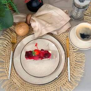 Vento no rosto, o som do mar e a areia aos pés, assim é a brisa perfeita de verão. Pensando em trazer essa sensação para dentro de casa, a coleção Brisa recebe a decoração de pequenos detalhes em preto em todo a peça, representando os grãos de areia. As bordas de cada item da coleção recebem a aplicação de um fino filete na cor marrom, remetendo aos materiais naturais como o bambu e a corda. Inspirados na vertente do design biofílico que busca conectar as pessoas com os benefícios trazidos pela presença da natureza em ambientes e na criação de produtos, apresentamos uma coleção com inspiração natural, trazendo seus elementos mais representativos para um dia a dia mais tranquilo.