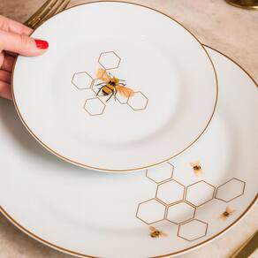 Com 19 cm de diâmetro, é ideal para servir bolos, tortas, frutas ou sobremesas diversas, valorizando o momento com beleza e bom gosto. Características: Marca: L'Hermitage Linha: Abelha Tipo: Prato de sobremesa Material: Porcelana Diâmetro: 19 cm Acabamento: Borda Brown Rim marrom Estampa: Abelha no centro Formato: Redondo Cor predominante: Branco com borda marrom e detalhe ilustrado Vantagens: Porcelana de alta qualidade, resistente e durável Design exclusivo que une charme natural e sofisticação Ideal para composições temáticas ou para destacar a mesa posta Superfície lisa, fácil de limpar Versátil para o uso diário ou ocasiões especiais Cuidados e conservação: Pode ser levado ao micro-ondas e lava-louças Evitar produtos abrasivos para preservar a estampa e o acabamento da borda Armazenar com separação entre peças para evitar riscos Esse prato é ideal para quem valoriza detalhes na decoração da mesa e deseja surpreender com um toque criativo e refinado. Combine com outras peças da linha Fullfit para uma composição ainda mais encantadora. Marca: Não Informado