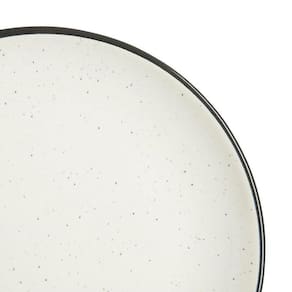 O Prato de Sobremesa Apolo Home Style possui 21 cm de diâmetro, é produzido em cerâmica com acabamento em esmalte reagente que cria pequenos pontinhos na peça, tornando-a única, finalizado com filete preto na borda. O prato combina textura lisa e estética contemporânea que se integra facilmente a diferentes composições da mesa-posta. O prato de sobremesa é próprio para servir diversos tipos de sobremesas logo após as principais refeições.