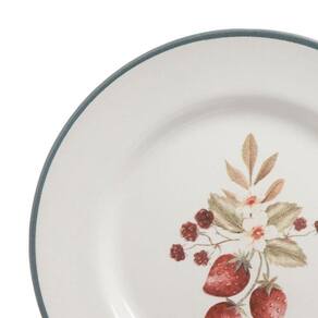 O Prato de Sobremesa Fresa com 21 cm de diâmetro é produzido em cerâmica. Possui estampa de morango aquarelados a mão com aplicação digital, é uma peça exclusiva Camicado. É próprio para servir diversos tipos de sobremesas logo após as principais refeições.