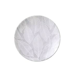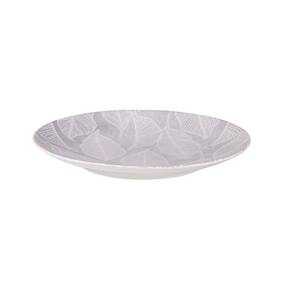 Com 19 cm de diâmetro, ele traz uma combinação equilibrada entre neutralidade e delicadeza. Sua estampa remete a folhas sobre um fundo que imita pedra, criando um visual moderno, sóbrio e ao mesmo tempo atemporal – ideal para qualquer estação do ano.