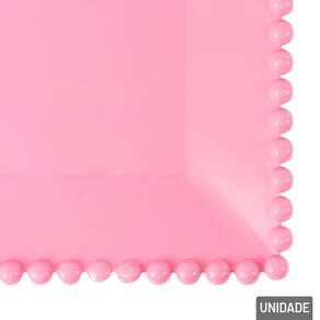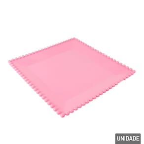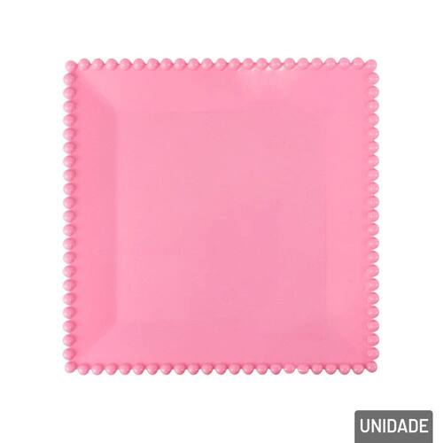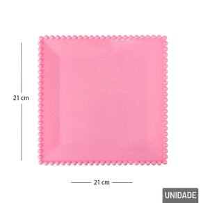 Prato Decorativo Plástico 21cm Quadrado Rosa Dê um toque de elegância e delicadeza à sua decoração com o Prato Decorativo Rosa. Ideal para compor ambientes com charme e funcionalidade, este prato decorativo é perfeito para enfeitar mesas, aparadores, estantes ou até mesmo para criar composições com velas, flores ou pequenos objetos decorativos.\nCom formato quadrado e 21cm de diâmetro, ele apresenta proporções equilibradas para uso isolado ou em conjunto com outras peças. O grande destaque do design está nos detalhes em bolinhas em relevo ao redor da borda, que adicionam textura e sofisticação à peça. Esses elementos conferem ao prato uma estética delicada e refinada, perfeita para quem valoriza os pequenos detalhes.\nFabricado em plástico resistente e leve, é uma peça prática, fácil de limpar e durável. Informação Adicional Marca : UNIBRASIL Tipo de material : Plástico Cores ou Estampa : Rosa Dimensões do Produto : 1,5 X 21 X 21 CM Dimensões da Embalagem : 1,5 X 21 X 21 CM Peso Bruto (Gramas) : 0.094 Marca: Não Informado