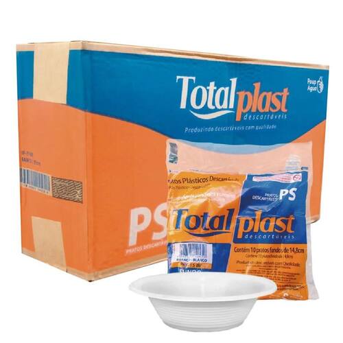 Prato Descartável Cumbuca Fundo 15cm Sobremesa C/500 Branco Kit de Prato Fundo 15cm Branco estilo cumbuca Totalplast 50 Pacotes com 10 unidades totalizando 500 unidades. Este conjunto de pratos fundos brancos oferece uma solução versátil e conveniente Para o seu comércio, evento ou refeição em casa. Perfeito para servir refeições em seu comércio, em eventos de grande porte ou para o dia a dia da sua família. Material de Alta Qualidade Poliestireno - PS : O poliestireno é um plástico resistente, atóxico e apropriado para contato com alimentos. Pratos Fundos: Com um design que lembra uma cumbuca, esses pratos são ideais para servir pratos que contenham líquidos ou molhos. Versatilidade para Diversos Tipos de Refeições: Seja uma saborosa sopa de legumes, um delicioso ensopado de frango ou um macarrão com molho especial, Esses pratos fundos acomodam uma variedade de pratos de forma prática e segura. Os pratos mantêm sua integridade mesmo com alimentos quentes ou líquidos. - Higiene e Descarte Consciente: Conhecida pela qualidade e durabilidade de seus produtos, este prato descartável é uma opção prática e econômica para evitar a lavagem de louça após a festa. O modelo é elegante, e se adapta a qualquer decoração de mesa. Escolha o Prato Fundo 15cm Descartável Bolo Sobremesa para a sua próxima festa e desfrute da comodidade de um produto descartável de qualidade. Marca: Não Informado